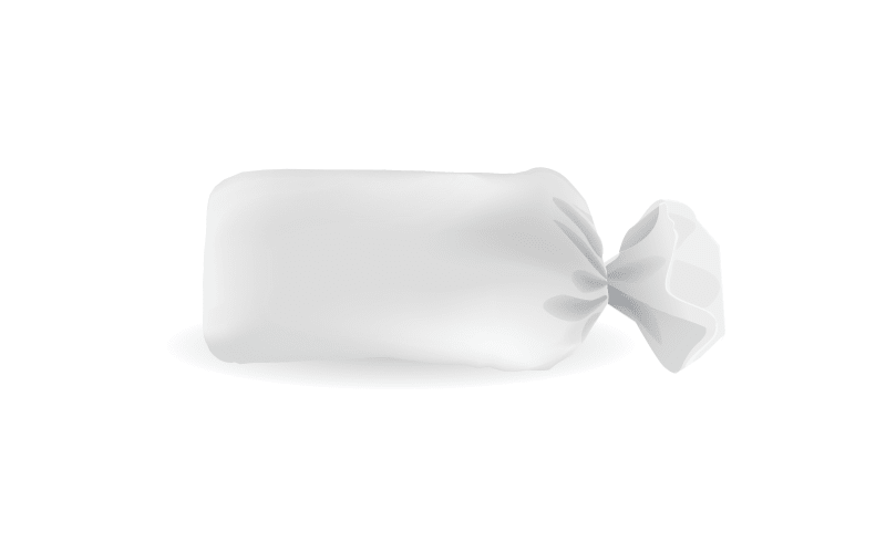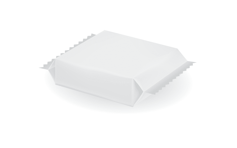 Traditioneller Packstil mit drei Siegelungen (eine kontinuierliche Längs- und zwei intermittierende Quernähte) und einer Vielzahl von wiederverschließbaren Systemen. Der Flachbeutel ist ein vielseitiger Beutel, der für jede Art von festem Produkt konzipiert ist.